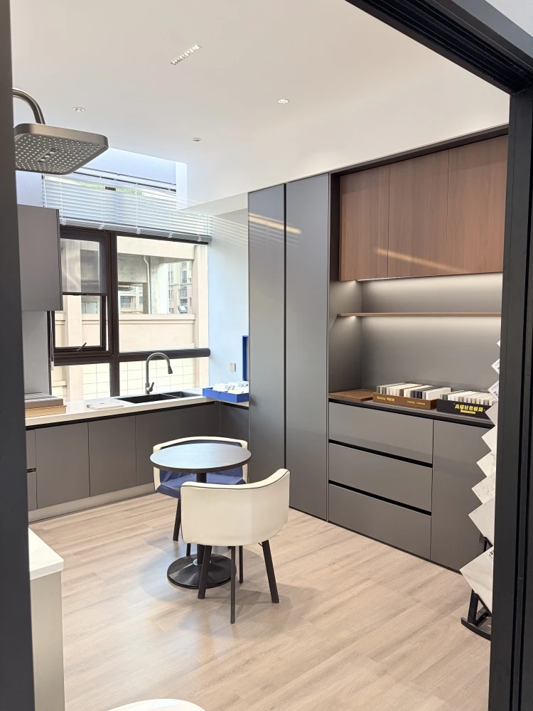 我们团队结合安顺本地业主的居住习惯,制定了两大改造重点:一是优化卫生间动线,二是扩容玄关储物区。首先将原外置洗手台向外侧拓展30cm,定制悬空浴室柜增加储物空间,同时把洗衣机移到阳台预留位,解放洗手台区域;卫生间内部做了长虹玻璃隔断分离淋浴区,搭配壁挂式马桶节省空间。玄关处定制了顶天立地鞋柜,底部留空放常用鞋,中间做开放式台面放钥匙和摆件,完美解决收纳痛点。
